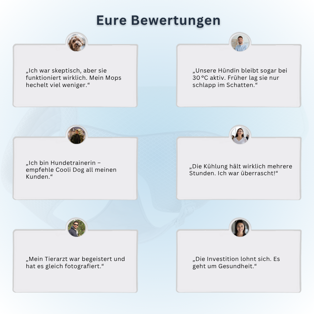 Wenn der Asphalt glüht und die Sonne brennt, braucht dein Hund mehr als nur Schatten. Cooli Dog schützt ihn zuverlässig vor gefährlichem Hitzestress – sicher, bequem und sofort einsatzbereit.