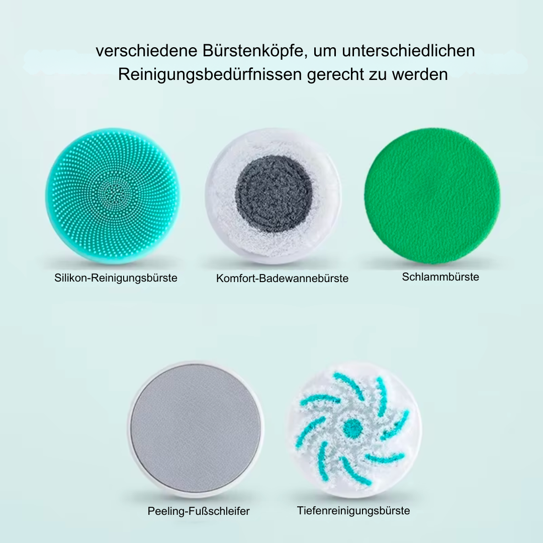 Hier kommt die Glow Brush ins Spiel: Ein 5-in-1 elektrisches Duschreinigungs- und Massage-Set, das dir das Leben leichter macht. Mit seinen wechselbaren Aufsätzen und dem sanften, hautfreundlichen Silikon bietet die Glow Brush genau das, was du brauchst, um selbst schwer zugängliche Stellen gründlich zu reinigen und gleichzeitig sanft zu massieren. Der leistungsstarke Motor übernimmt die anstrengende Arbeit für dich, sodass deine Haut porentief gereinigt, durchblutet und gepflegt wird, ohne dass deine Hände müde werden. Erlebe pure Frische und Wohlgefühl mit minimalem Aufwand!